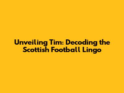 Unveiling 'Tim': Decoding The Scottish Football Lingo