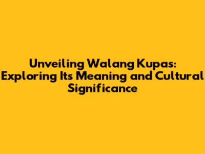 Cultural Context and Usage of Walang Kupas