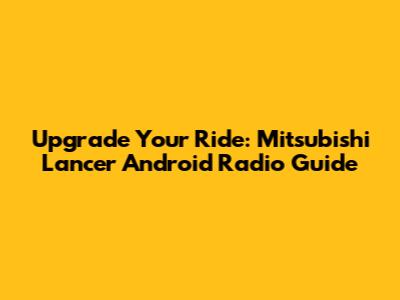Upgrade Your Ride: Mitsubishi Lancer Android Radio Guide