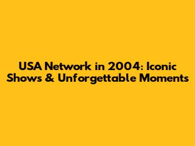 USA Network In 2004: Iconic Shows & Unforgettable Moments