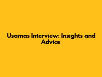 Usama's Interview: Insights And Advice