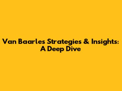 Van Baarle's Strategies & Insights: A Deep Dive