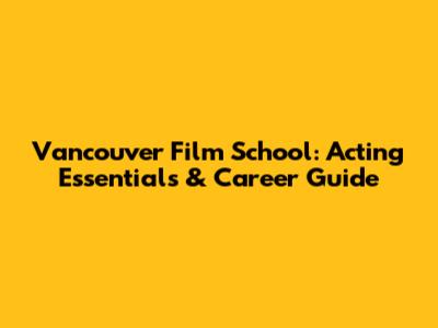 Vancouver Film School: Acting Essentials & Career Guide