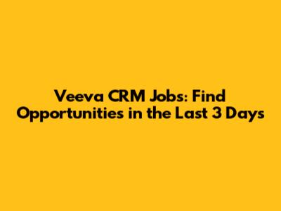Veeva CRM Jobs: Find Opportunities In The Last 3 Days