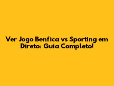 Onde Assistir ao Jogo Benfica vs Sporting em Direto?