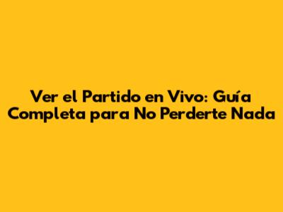 Ver El Partido En Vivo: Guía Completa