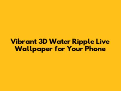 Vibrant 3D Water Ripple Live Wallpaper For Your Phone