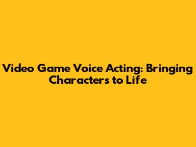 Video Game Voice Acting: Bringing Characters To Life