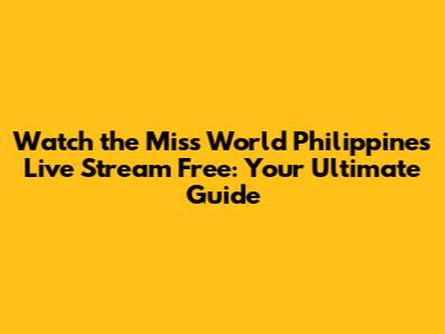 Watch Miss World Philippines Live Stream Free