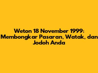 Weton 18 November 1999: Pasaran, Watak & Jodoh