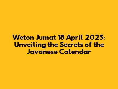 Hey everyone! Ever wondered about the Javanese calendar and how it intertwines with our lives? Today, we're diving deep into the weton for Friday, April 18, 2025. For those unfamiliar, weton is a Javanese term that refers to the day of the week combined with the market day of the Javanese calendar. It's super important in Javanese culture, as it's believed to influence various aspects of life, from personality traits to compatibility in relationships. So, let's unpack everything you need to know about the weton of this particular date, exploring its potential meanings and significance.