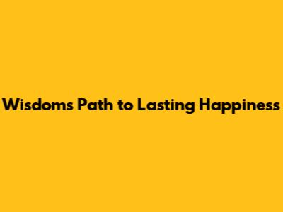 Wisdom's Path To Lasting Happiness
