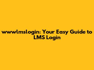 Wwwlmslogin: Your Easy Guide To LMS Login