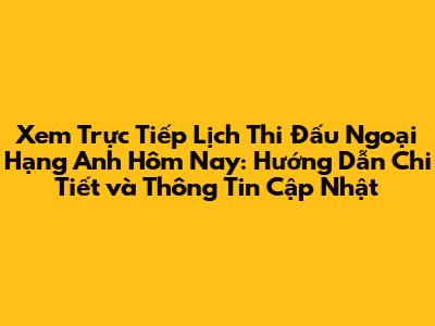 Xem Trực Tiếp Lịch Thi Đấu Ngoại Hạng Anh Hôm Nay