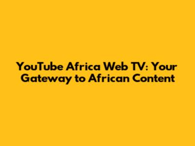 YouTube Africa Web TV: Your Gateway To African Content