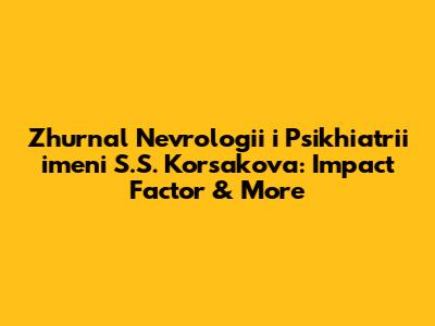 Zh Nevrol Psikhiatr: Impact Factor & More